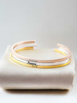 Celebrate the joy of a new arrival with the 3mm Birth Stats Thick Gauge Cuff Bracelet, customizable with both an outside name and inside birth statistics. This beautiful cuff is the perfect new baby gift, providing a lasting keepsake for parents to cherish. Personalize the outside with the baby’s name, and engrave important details like birth time, date, weight, and length on the inside. Example: Outside: "Emily Mae" Inside: "10:10 am · 12-25-2023 · 4lbs, 13 oz · 19 in." This bracelet is a meaningful way to capture a moment that will be treasured forever.