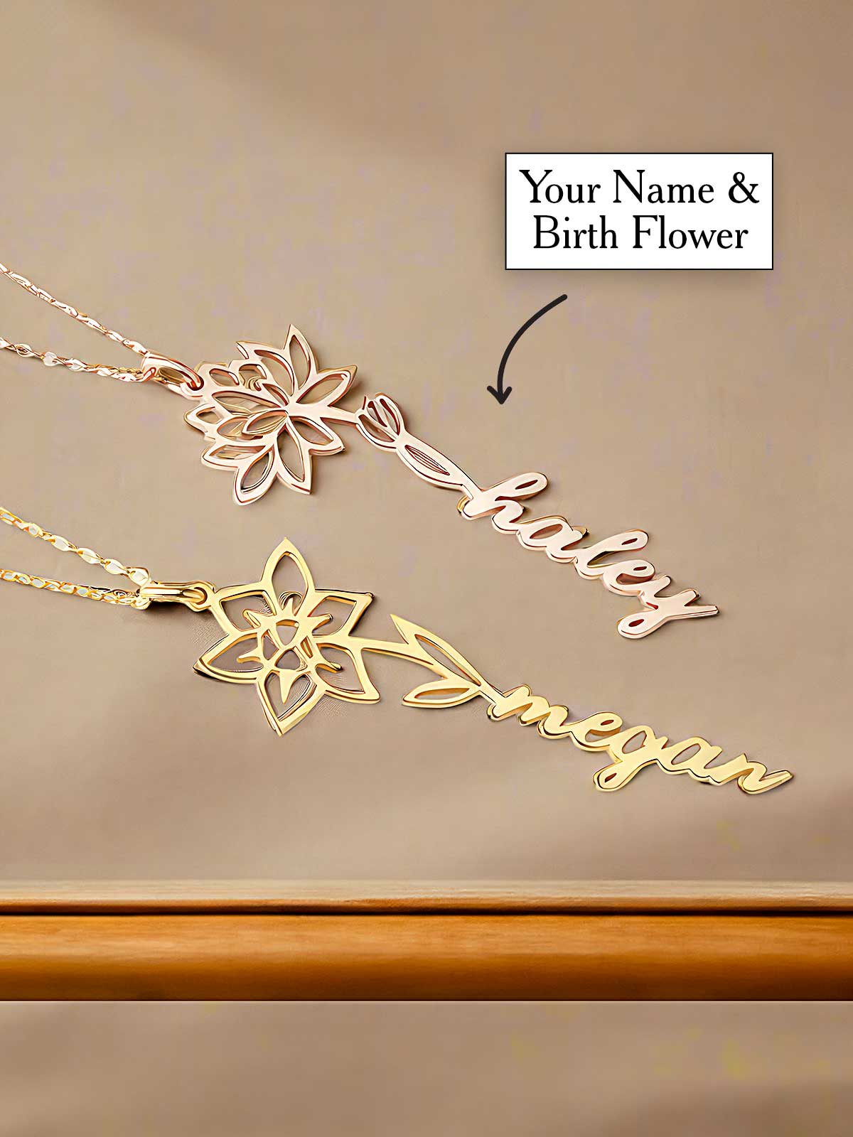 Celebrate the special bond of family with our Birth Flower Necklace, customized with 1 birth flower and 1 name molded into a vertical design. The elegant layout features the birth flower on top and the name below, resembling a vertical bar necklace that beautifully captures the essence of someone dear. This personalized necklace is a meaningful gift for any mom or grandmom, perfect for Mother's Day, birthdays, or any special occasion. It’s a lovely way to keep someone she loves close to her heart, reminding her of the joy they bring every day.