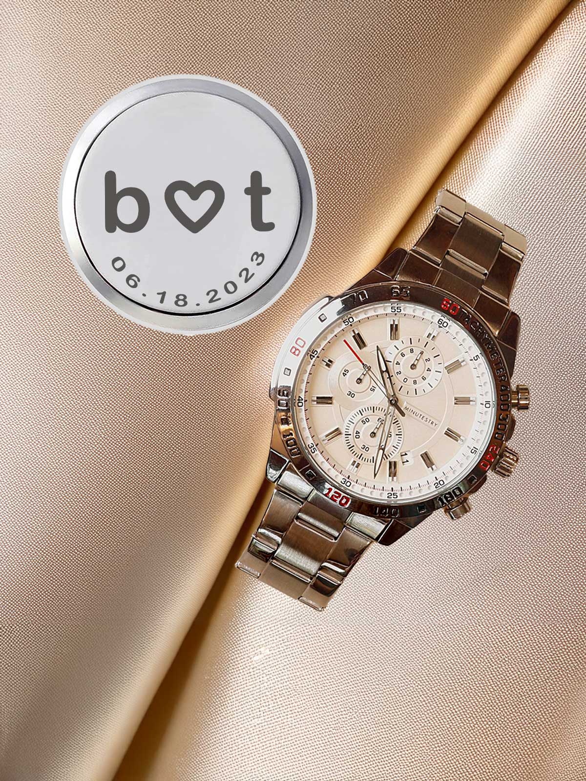 Celebrate your love story with our Engraved Men’s Watch, personalized with couples’ initials and a special date (e.g., J ♡ K, 10.12.2024). Crafted with a sleek stainless steel case, your choice of genuine leather or stainless steel strap, and scratch-resistant mineral crystal glass, this timeless piece is both stylish and durable. Perfect for marking your engagement, wedding, anniversary, or any special occasion, this watch is more than an accessory—it’s a lasting symbol of your most cherished moments together.