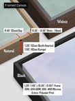 - Cotton-poly blend (300-350gsm, 350-400 microns) on FSC-certified stretcher bars