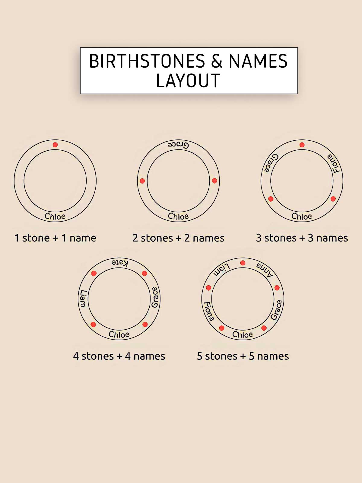 - Up to 6 names without birthstones (specify 'no birthstones')