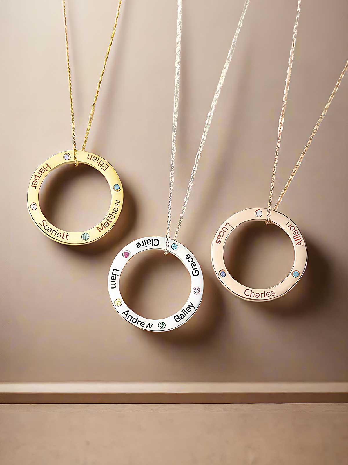 Single Ring Necklace with Kids' Names & Birthstones – Meaningful Mom Gift