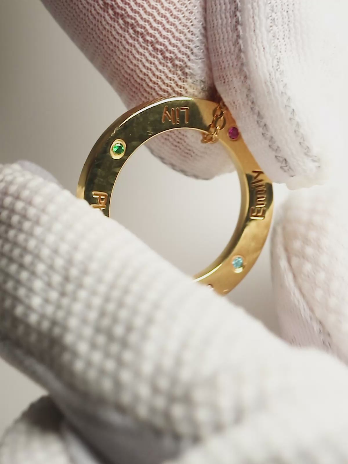 This beautiful single ring necklace can be personalized with 1-5 names and birthstones, making it a thoughtful and meaningful gift for any mom. Whether for Mother's Day or a special occasion, this necklace serves as a perfect way to keep her loved ones close to her heart. Each name and birthstone represents someone special in her life, creating a one-of-a-kind keepsake she’ll cherish forever. With its elegant design and sentimental value, it’s a timeless piece that celebrates family bonds and love. A perfect gift to show how much she’s appreciated.