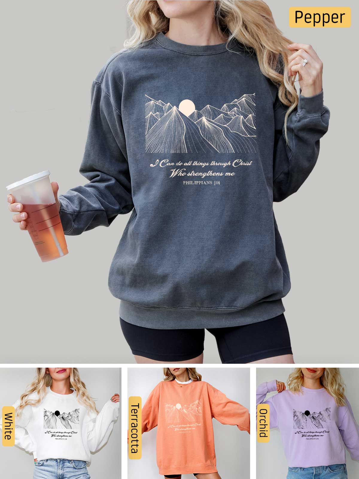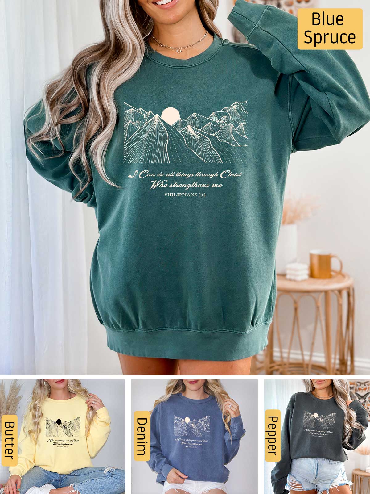 Embrace the strength and determination that comes from faith with our Philippians 4:13 apparel. Featuring a stunning mountains graphic, this design serves as a powerful reminder: "I can do all things through Christ who strengthens me." Perfect for those who find solace and motivation in their faith, wear this to inspire yourself and others daily.