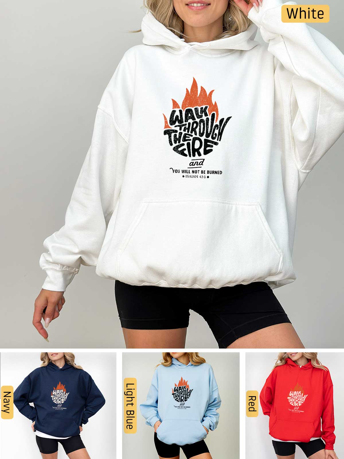 Our Isaiah 43:2 apparel features a striking design with a blazing fire, capturing the essence of resilience and faith. Emblazoned with the powerful message "Walk through Fire," it serves as a bold reminder of God's promise: "When you walk through the fire, you will not be burned; the flames will not set you ablaze." Wear it to symbolize strength and divine protection.