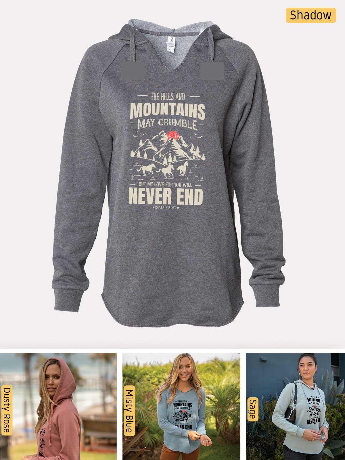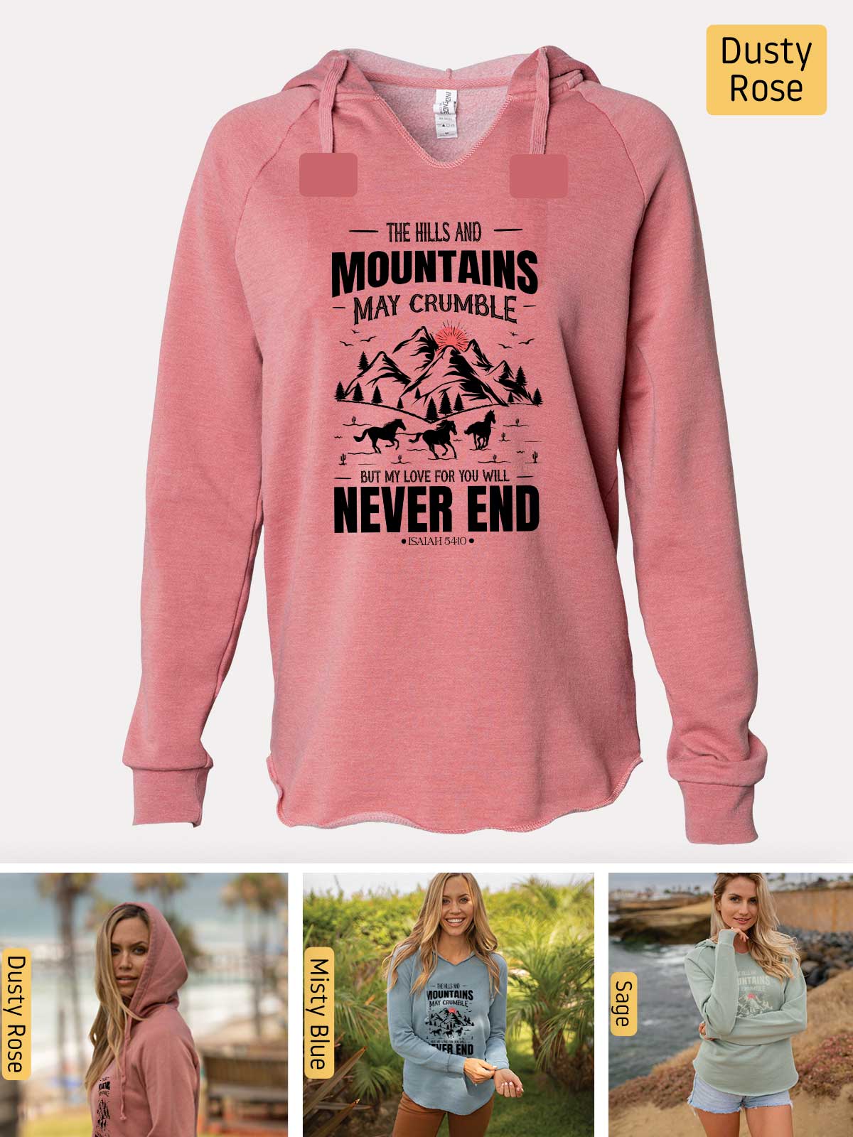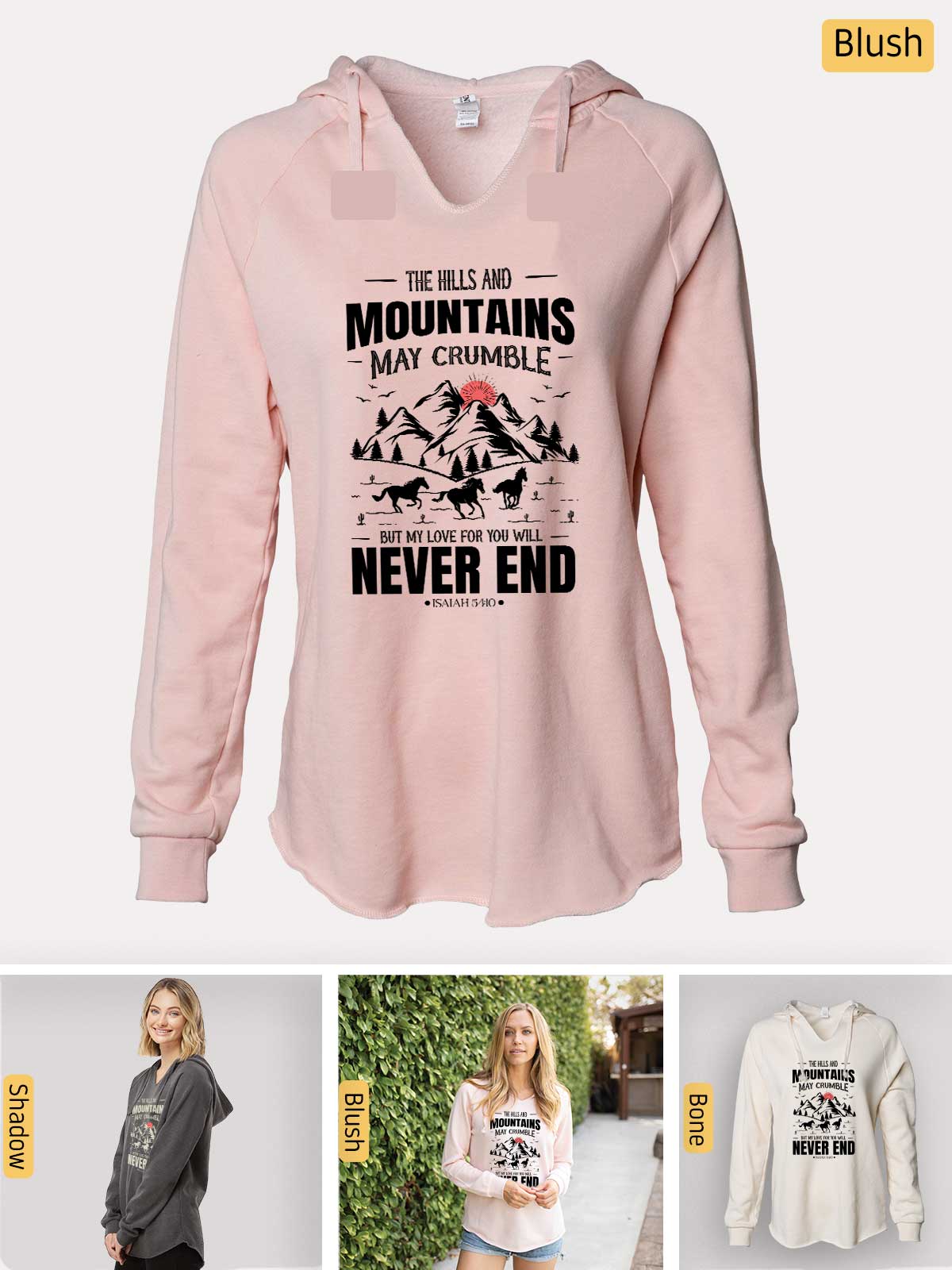 Mountains may Crumble, My Love Endures Forever - Isaiah 54:10 - Lightweight, Cali Wave-washed Women's Hooded Sweatshirt