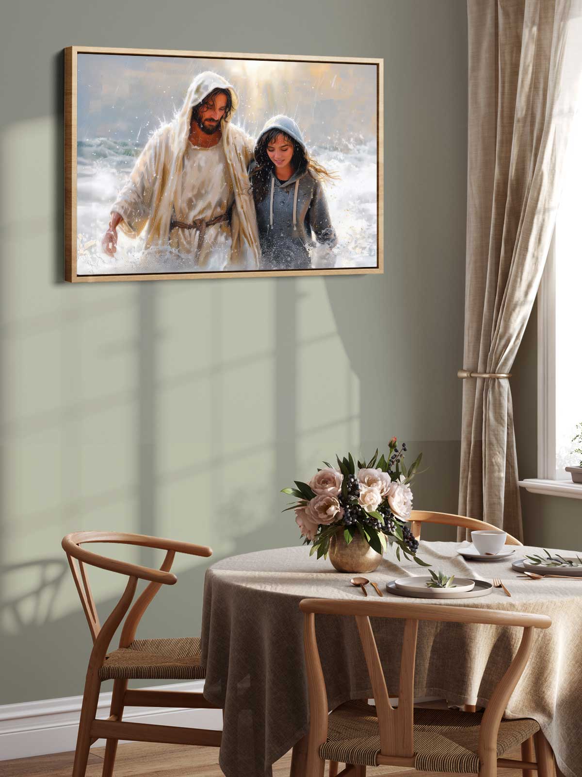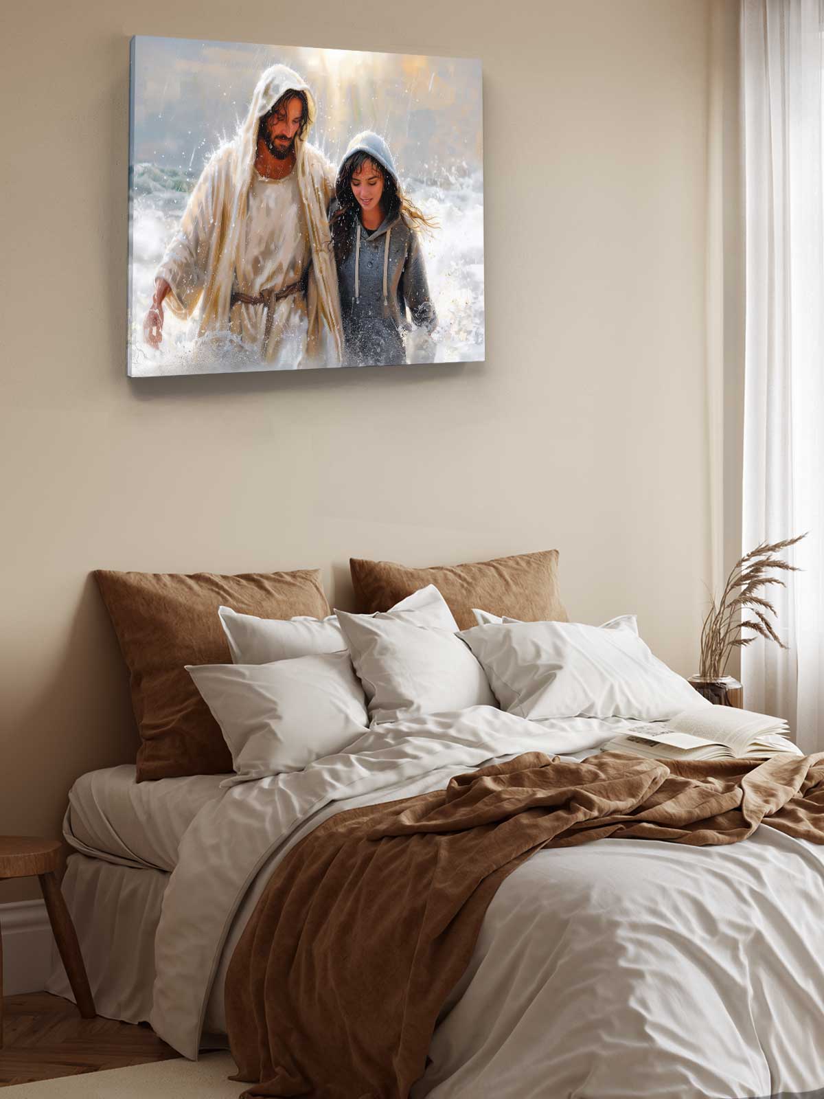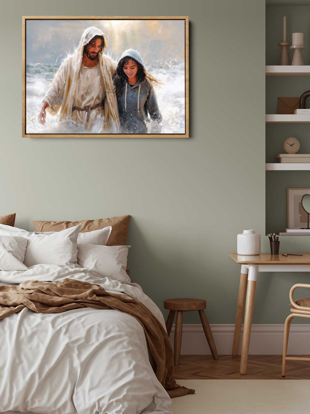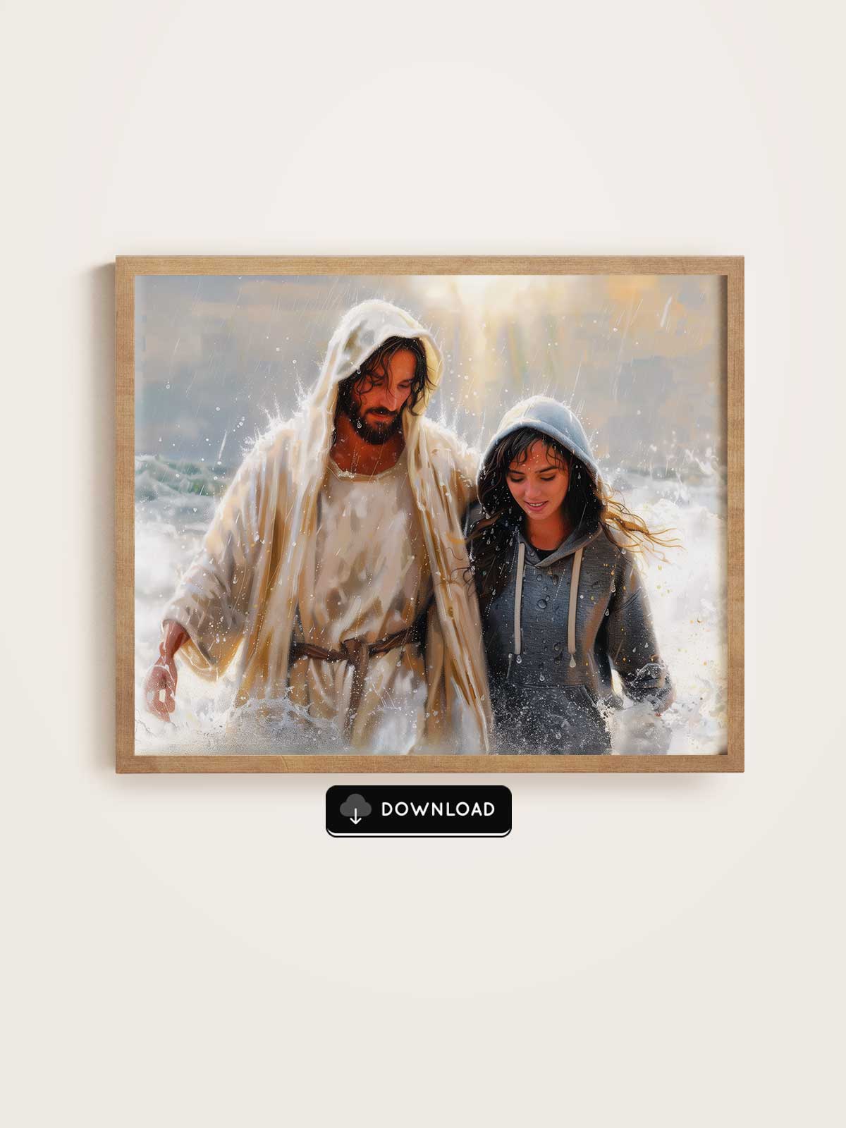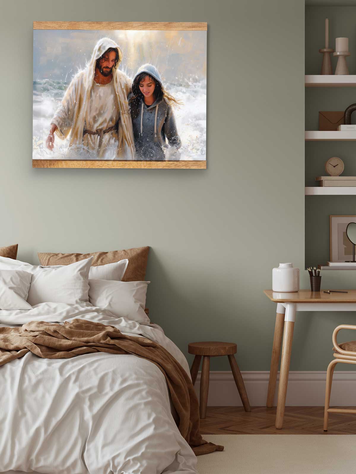 This artwork beautifully portrays Jesus walking alongside a young girl, His presence a symbol of guidance and love. The scene conveys safety, direction, and the comfort of knowing we never walk alone. Perfect for any space where encouragement and hope are needed, it is also a thoughtful gift for confirmations, graduations, or life’s new beginnings.