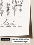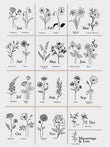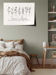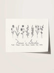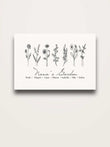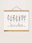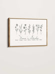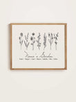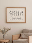 Bright, clean, and contemporary, this modern line art print features your family’s birth flowers against a crisp white background. Personalized with names, this design emphasizes simplicity and elegance, making it a versatile fit for any home. Its minimal style draws attention to the delicate floral details, creating a meaningful keepsake that’s both stylish and sentimental.