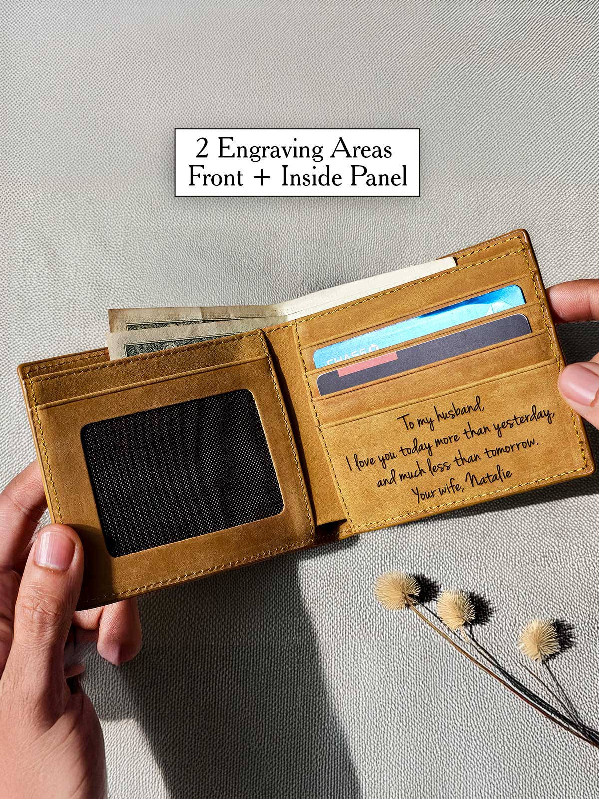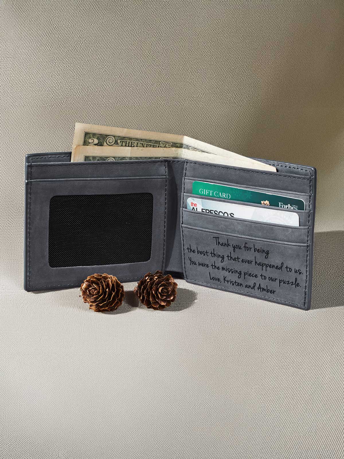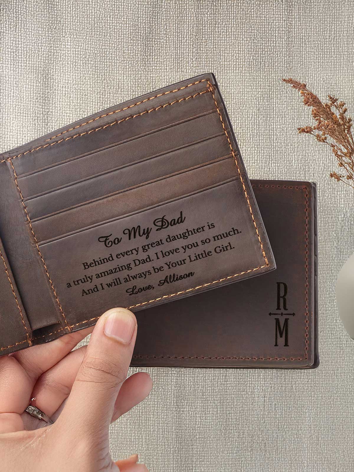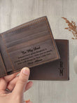 Surprise the special men in your life with a timeless gift they’ll cherish forever. This Men’s BiFold Wallet, crafted from genuine leather, combines style, practicality, and sentiment. Personalized with a monogram or name on the front and a heartfelt engraved message on the inside, it’s truly one-of-a-kind. Whether for your boyfriend, husband, father, or son, this wallet is more than just an accessory—it’s a keepsake they’ll use daily and treasure for years. Perfect for birthdays, anniversaries, Father’s Day, or any occasion, it’s the ultimate blend of functionality and thoughtfulness.