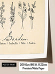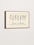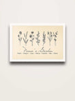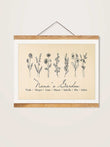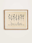 A fresh take on our best-selling vintage design, this alternate version offers subtle design differences that bring new life to the classic beige backdrop. The delicate line work celebrates each family member’s birth month flower and name, creating an art print that feels both historic and personal. Ideal for those who love understated elegance, it’s a gift that grows more meaningful with every glance.