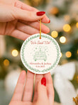A charming getaway car with a tiny “Just Married” banner sits inside a laurel wreath to commemorate your send-off. We Said I Do - is printed as part of the design; you add names and date to mark the day you drove into married life. The whimsical illustration and classic layout pair easily with any décor, and the matte ceramic finish keeps colors soft and the lettering perfectly legible on trees or keepsake stands.